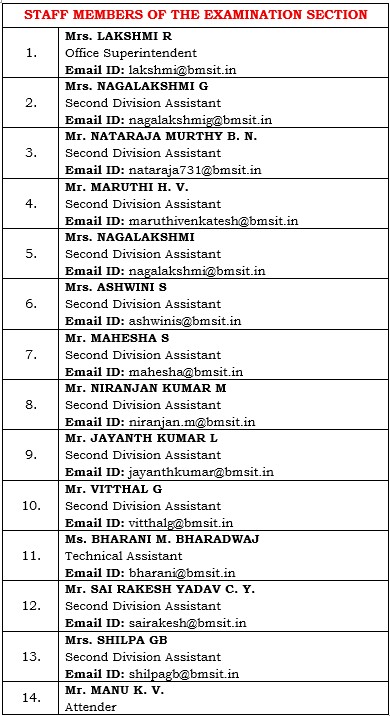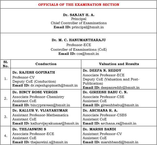 The Examination Section of BMS Institute of Technology and Management supervises all examination and evaluation activities under the autonomous framework. The Institute is affiliated to Visvesvaraya Technological University (VTU), Belagavi, and has held autonomous status since 2021. The Examination Section conducts assessments for all programs in a timely, transparent, and accurate manner. It plans and implements Continuous Internal Evaluation and Semester End Examinations in accordance with approved academic VTU regulations.